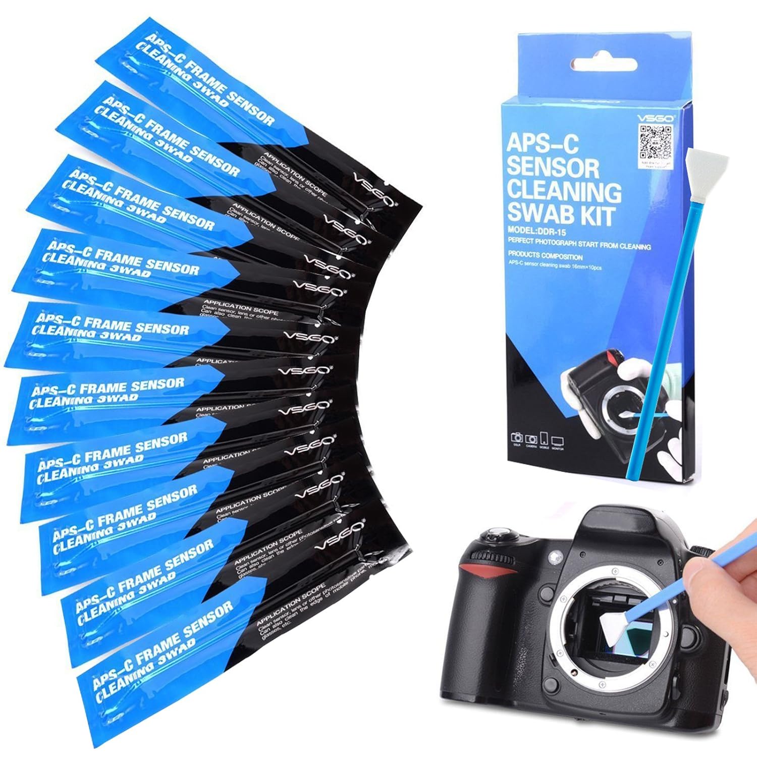 VSGO Pulitore Sensore APS-C Sensor Swab Kit CCD Swab, la larghezza del tampone è di 16 millimetri compatibile con sensori montatura APS-C